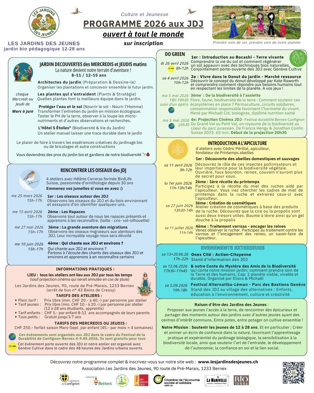 Depuis mai 2023, sur une parcelle de 2000 m2 sur la commune de Bernex, les Jardins des Jeunes sont ouverts aux Jeunes adultes et Adolescents de 12 à 28 ans.